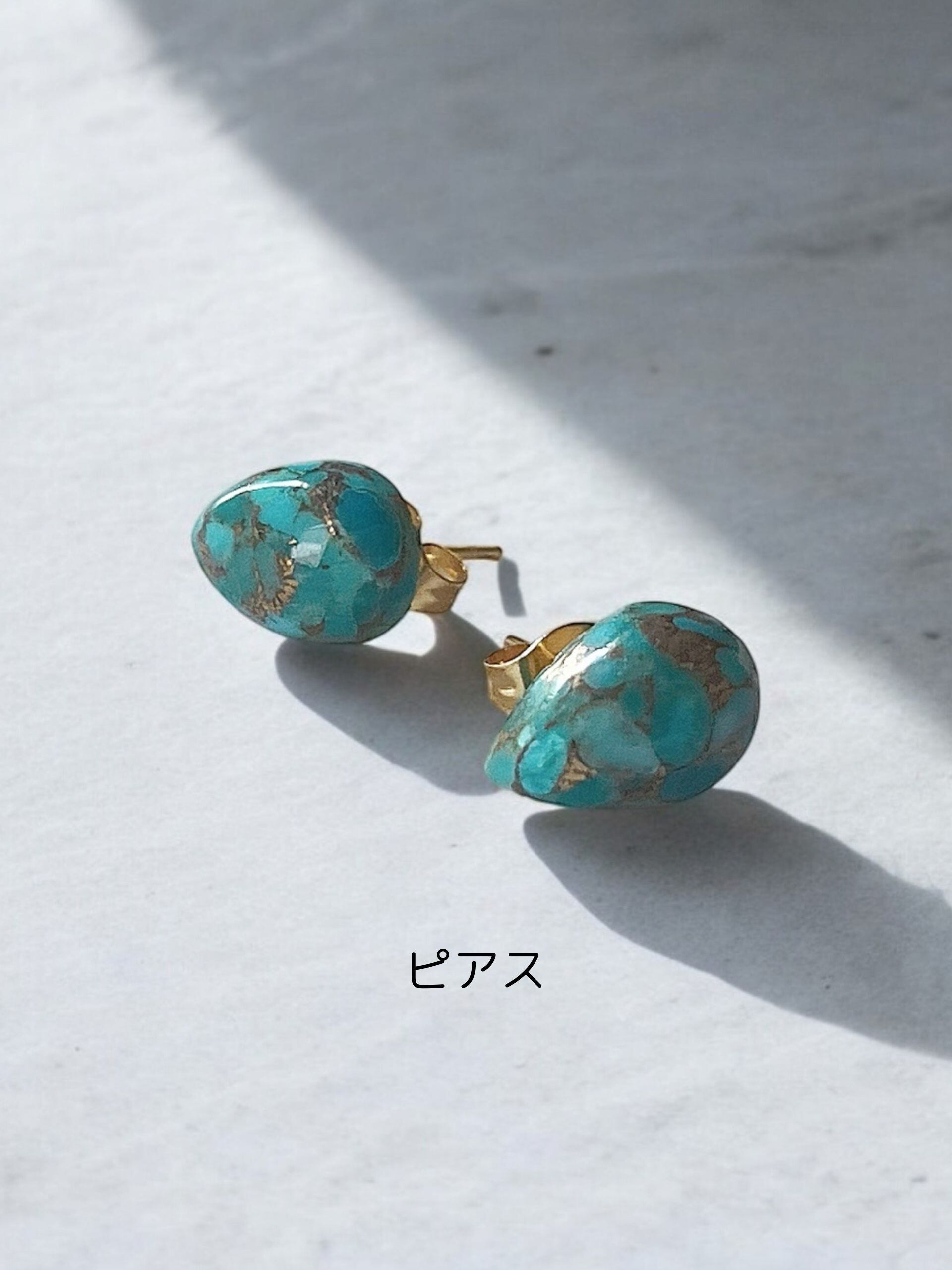 光を受けるたびに表情を変える雫型のフォルムは、耳元にそっと透明感と軽やかさを添えてくれます。